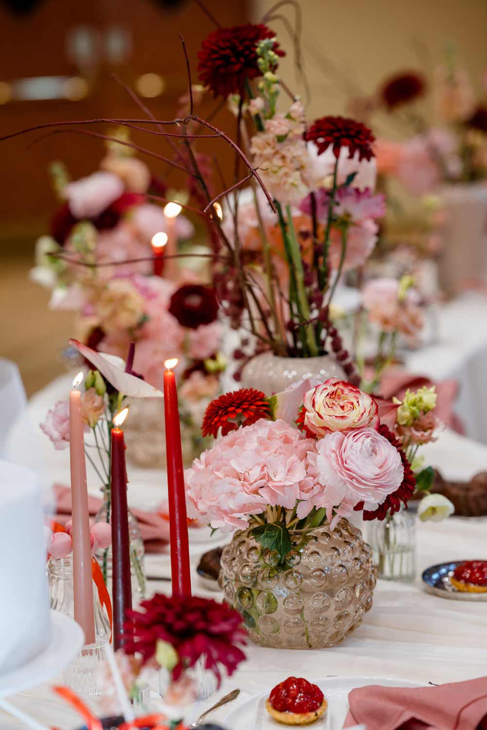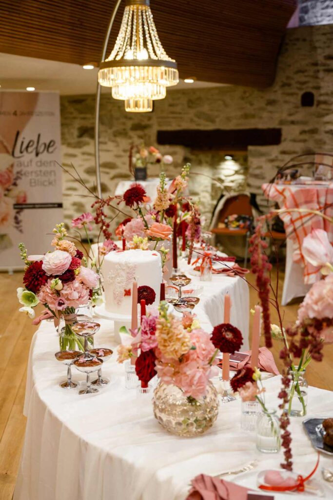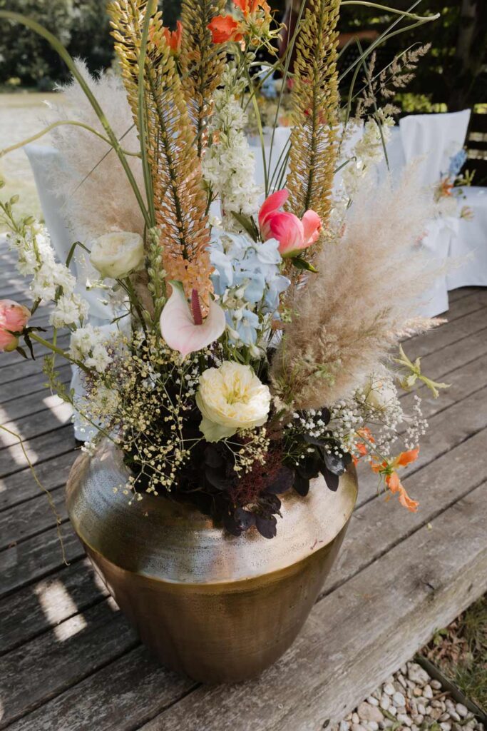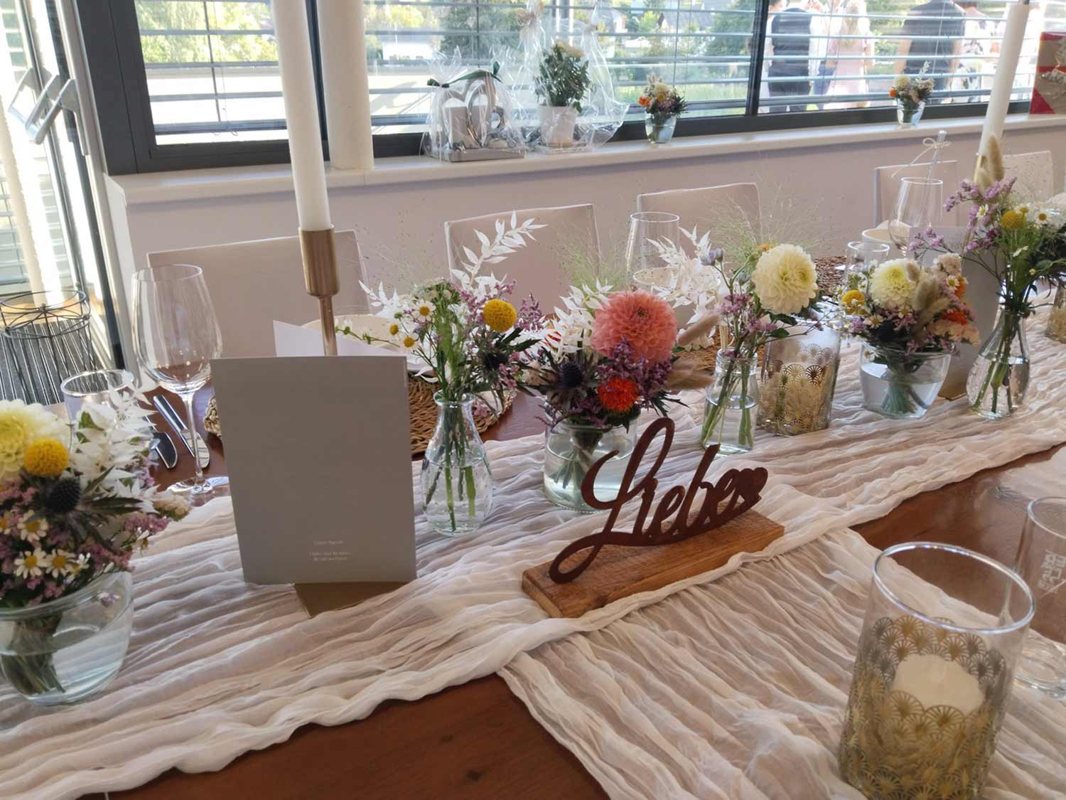 Vom romantischen Blumenschmuck in der Kirche und bei der standesamtlichen Trauung, über zarte Blumenanstecker, die Blüten für die Blumenmädchen, Tischdekoration und den Blumenarrangements beim Hochzeitsfest bis hin zum wichtigsten Teil der Hochzeit, dem Brautstrauß: Unser Team erfüllt mit Freude alle individuellen Herzenswünsche des Brautpaares und entwickelt stets mit viel Liebe zum Detail neue, kreative Ideen, passend zu Stil, Thema und Locaton der Hochzeit. Ganz gleich, ob ganz in Weiß, elegant, opulent oder eine bestimmte Farbrichtung, ob bunt, natürlich oder filigrane Blumen und Naturmaterialien in vielen kleinen Vasen - unser Spektrum ist so vielfältig, wie es eure Vorstellungen sein dürfen.